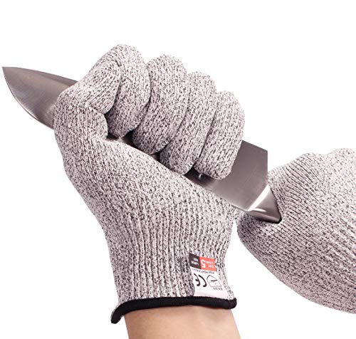 • Multipurpose Professional Cut Resistant Gloves:Awarded with the highest cut resistance certification, EN388 level 5 protection. Protect your hands for food cutting / wood carving / dealing with broken glass / oyster shucking / gardening / mandolining / fish filleting / peeling and any work with sharp blades